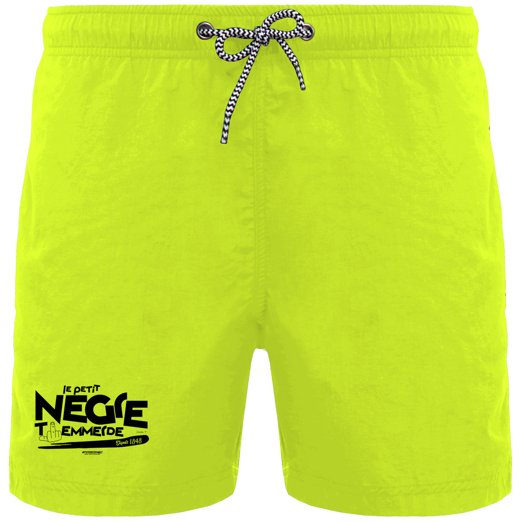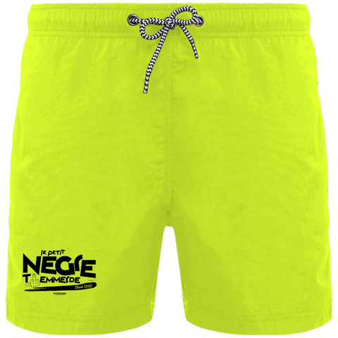 Short de bain homme avec Extérieur : 100% polyamide 105g/m². Slip intégré en maille filet 100% polyester 65g/m². Doublure ceinture polycoton 80g/m². Tissu léger et à séchage rapide. Coupe mode et couleurs flashys. Short avec 2 poches latérales et 1 poche arrière avec œillet, rabat et bande auto-agrippante. Ceinture intérieure fantaisie et élastiquée avec cordon de serrage rayé. Grammage : 105 g/m².